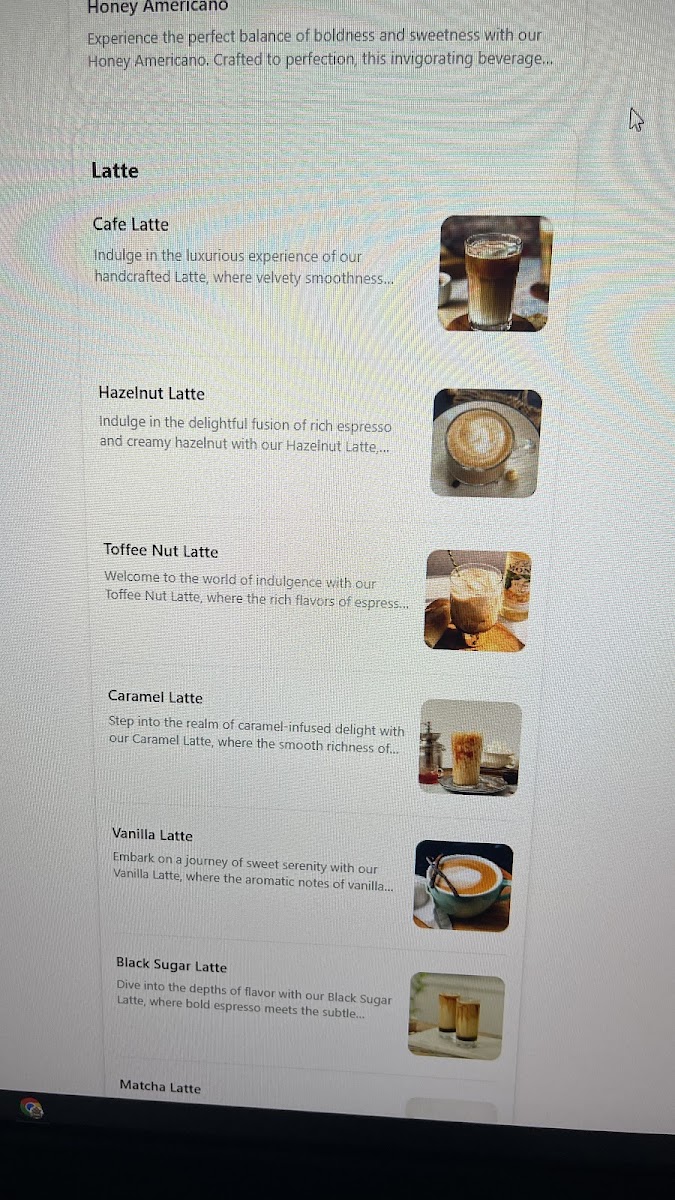 - Cafe Latte: Indulge in velvety smoothness with options like caramel and hazelnut, perfect for any mood—warm for comfort or iced for refreshment.